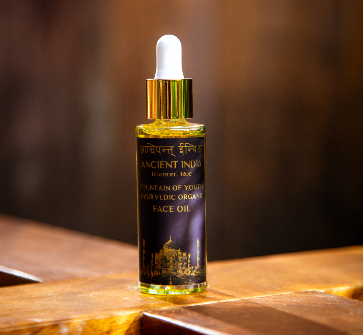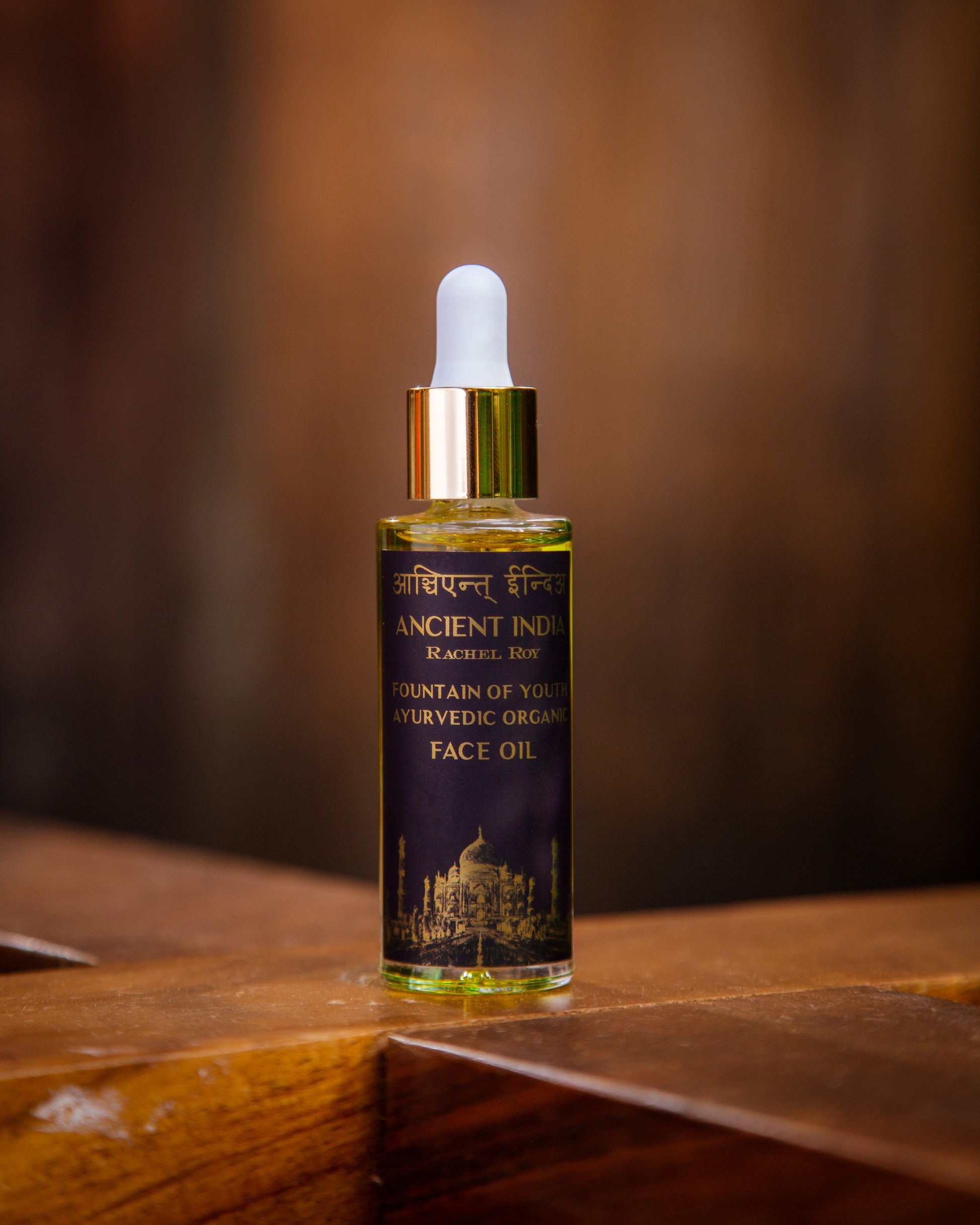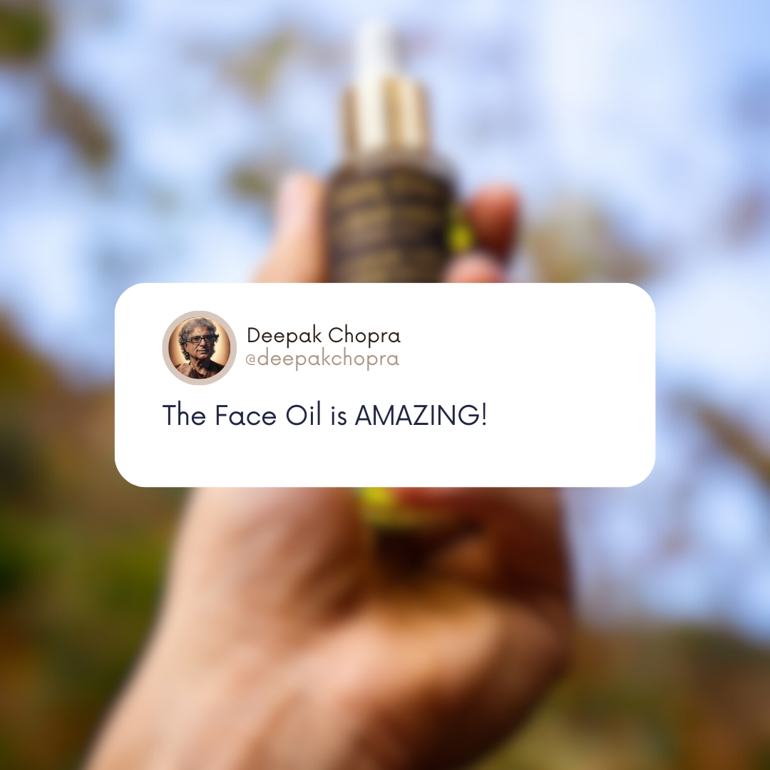 Relax and rub 2- 3 drops of Ayurvedic face oil in the palm of your hands or fingertips. Apply oil with the warmth of your own vibratory energy for skin health and well-being.